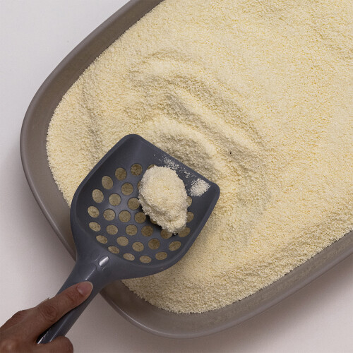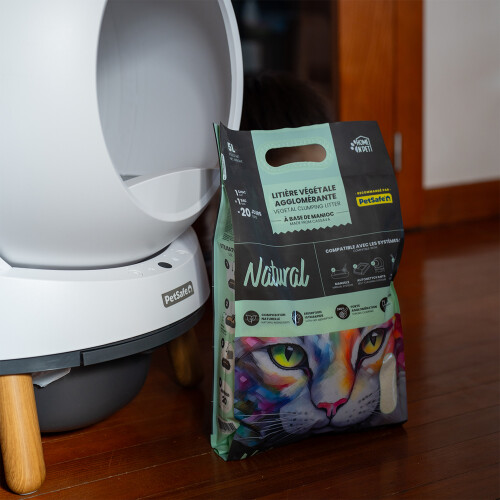 Composée de fibres de maïs, pour son fort pouvoir absorbant et de fibres de manioc, une plante réputée pour ses vertus naturellement agglomérantes, la litière NATURAL absorbe les liquides et prévient ainsi le développement de bactéries, laissant un environnement sain et préservé. Sa composition 100% naturelle ne contient aucun parfum ; sa forme de granulés est agréable pour les coussinets, ne colle pas aux poils et produit peu de poussière lords du remplissage du bac. L’ajout de bicarbonate de soude augmente le pouvoir de neutralisation des mauvaises odeurs. L’agglomération rapide et compacte permet d’enlever facilement les agglomérats à la pelle, et de les jeter dans les toilettes, pour un entretien rapide et facile. Home N’Pet a sélectionné rigoureusement les matières premières de cette litière afin de garantir une litière de très haute qualité et parfaitement adaptée au fonctionnement des systèmes de bacs autonettoyants présents sur le marché français.